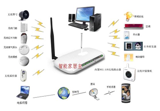 智能家居系统利用先进的信号传送和微处理器技术,来集成或控制家中的电子 电器产品或系统,例如计算机、照明系统、厨房设备、保安系统、暖气及冷气系统、通讯系统、视频及音响系统等,使家庭更为舒适、安全、高效和节能。一方面,系统会自动参考来自各个传感器中的信号做出相应的一系列操作,另一方面主人可以通过手机和平板等人机接口来控制家中的电子电器产品。